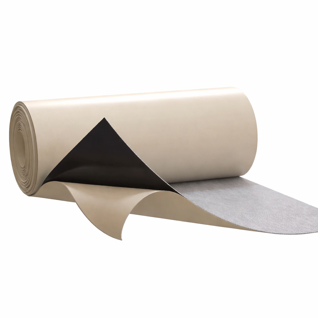 היריעה משלבת שכבת קצף פולימרי עם דבק ביטומני חזק ורשת עליונה לחיבור מושלם לריצוף.